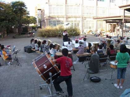 晴れた秋空のもと,ドリバンは,みんなの音楽会に向けてロータリーで演奏していました。