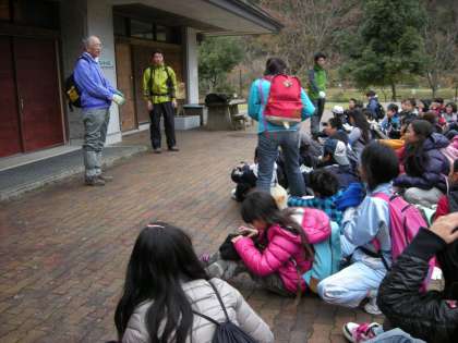 今朝は、昨日より5度以上下がりました。曇りで、少し霧雨が降っていました。山に登れるのか心配しました。旗も、はためき、風が強いので余計にに寒く感じました。