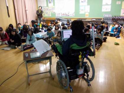 中村さんは,高校時代のラグビーの練習中の事故で脊髄を損傷されました。無事に手術が成功してリハビリを続けられましたが,今も麻痺などの障害があります。生活の様子や,日常感じておられることを素直に語っていただき,子ども達も話に聞き入っていました。