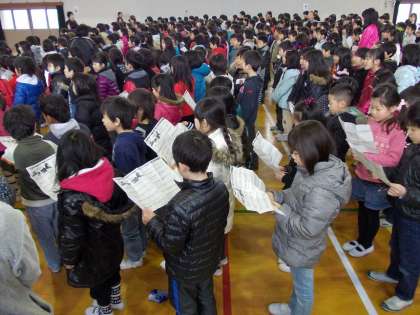 6年生を送る会で全校合唱をする『この星にうまれて』の練習をしました。低学年と高学年の美しいハーモニーになるように,学級や学年で練習してき成果を合わせました。