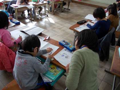 1年生は,今までの学習で,「見つけたよカード」や「先生あのね」に自分の文章を書くことを積み重ねてきました。その学習をもとにして,原稿用紙の約束もふまえて作文を書いています。