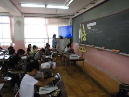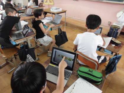 低学年の子どもたちは夏の生き物さがしに夢中ですが、4年生は理科で夏の生き物について調べていました。