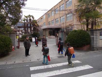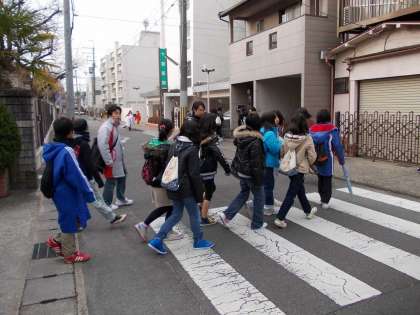 今日は4年生と6年生が科学センターに出かけました。2両編成の別の時刻の叡山電車に乗るため,4年生は8時出発,6年生は8時10分の出発でした。4年生と6年生が出発してから,他の学年の児童が登校して来ました。