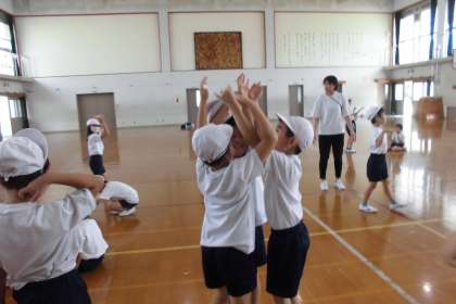 「ゼリーのようなクラゲってどんな動きしたら伝わるかな」と子どもたちは自由に動いていました。
