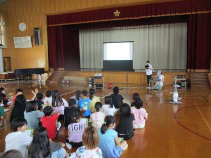 7日(木)には、株式会社日新電機の方にお越しいただき、出前授業を行っていただきました。総合的な学習の時間に環境について学習し、また、夏休みにはエコライフチャレンジに取り組むことで環境問題について理解を深めてきました。