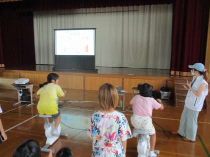 これら3つのすべての発電方法を今回は実際に体験させていただきました。みんなで一生懸命にためた電気がエアコンを使うと3分ともたないことには驚きました。電気を生み出すために必要なエネルギーの大きさや電気を大切に使うことの重要性を体感的に学ぶことができました。学習後、教室に戻ると、エアコンも扇風機も電気を消そう。もったいないという声があがるほどでした。全く電化製品を使わないということは難しいですが、使うところは使う。「必要ないところはできるだけ削減する。その意識をもち、行動することが大切だね。」と話をしました。