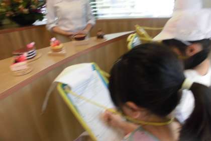 お店の人の話を聞いて,素早くメモをとったり,耳を傾けて聞いたりする様子が見られました。実感を伴った理解につながる貴重な機会となりました。