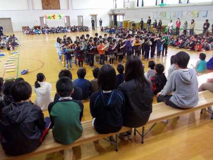 1年生から順番に,心をこめた出し物を6年生にプレゼントしました。