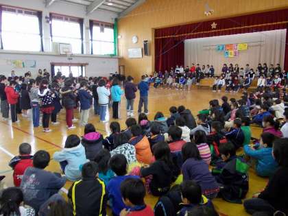 1年生から順番に,心をこめた出し物を6年生にプレゼントしました。