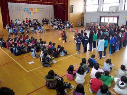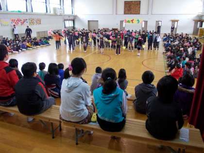1年生から順番に,心をこめた出し物を6年生にプレゼントしました。