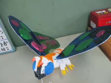 この3つの作品は、生き物のお店の犬とイルカとツチノコです。