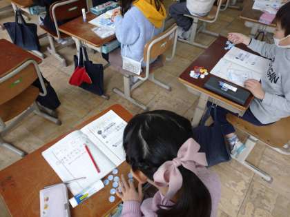 算数の学習では、数図ブロックや数え棒などの具体物を動かしながら学習を進めることが多くあります。今週は、お金の模型と時計を使って学習をしました。お金の出し方を考える学習では、実際にお買い物をしたことがあるかをたずねると、経験のある児童はいましたが、支払はというと…なんと!カードで支払ったとのこと!今の時代ですね。それだけに余計にお金の模型を使っての学習は必要かもしれません。