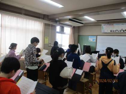 音楽の授業で『マイバラード』を合唱しています。まだまだ譜読みの段階ですが、気が付くと口ずさんでいる姿も見られます。地声にならず、美しい声で歌えたら素敵ですね。“とどけ!愛のメッセージ!”