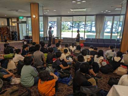 時間が前後しますが、退館式の様子です。お世話になったスタッフの皆さんにお礼を伝え、2日めの活動に出かけました。