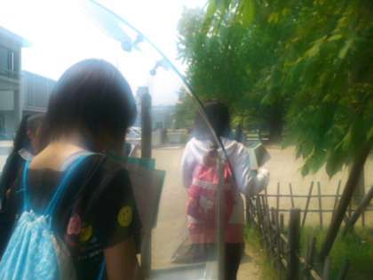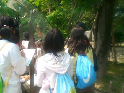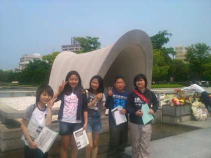 平和記念公園の中にはたくさんの慰霊碑、記念碑があります。子どもたちはグループで回りながら学習しました。