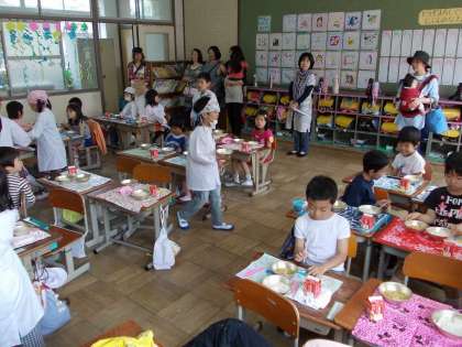 PTA役員の方々のお世話になり,今年も給食試食会を行いました。