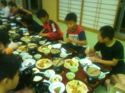 みんなが楽しみの夕食の時間です。他のプログラムがあったので遅めの時間でした。そのせいかほとんどの子どもたちは残さずしっかりといただきました。