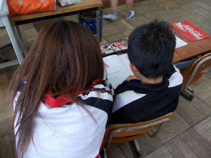 4年生の算数の時間は,担任と教務主任が2人で協力して授業を進めています。