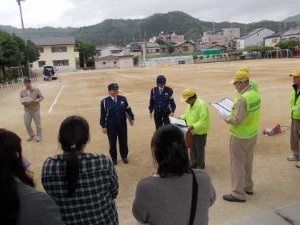 早朝より運動場にコースを作っていただき,信号機,ホワイトボード,放送設備等をセットしていただき,役員方が打ち合わせをして子ども達を迎えてくださいました。