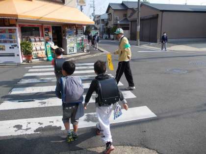 交差点で,いつも子ども達の安全を見守ってくださっています。江指さんに大きな声で挨拶できたかな。