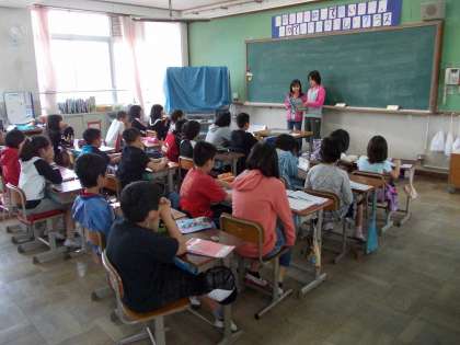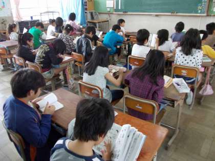 今回は5年生の教室の様子を見に行きました。係の児童が読み聞かせをしているところに出会いました。