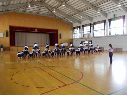 6年生の体育の時間の様子です。内容は,お楽しみに…。