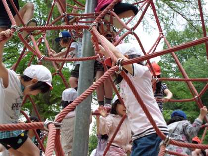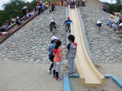 お天気に恵まれ、みんなで元気よく歩いて宝ケ池公園に行ってきました。広場でみんなあそびをしたり、遊具ゾーンで楽しく遊びました。