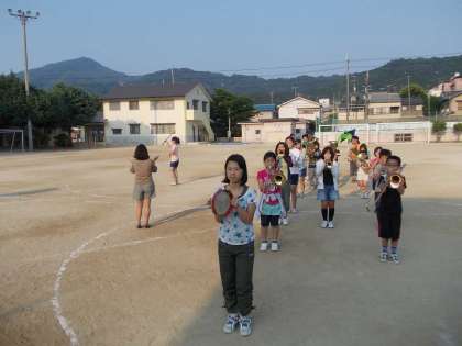 普段は音楽室で練習していますが,運動会の本番はグランドで歩きながらの演奏になるので,この日の放課後に歩きながら練習しました。
