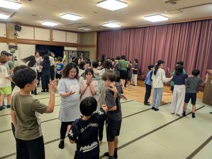 レク係を中心に、修二新喜劇と猛獣狩り進化版を楽しみました。修学旅行を舞台にした内容で、豪華な俳優陣?も活躍。笑顔いっぱいのひとときでした。
