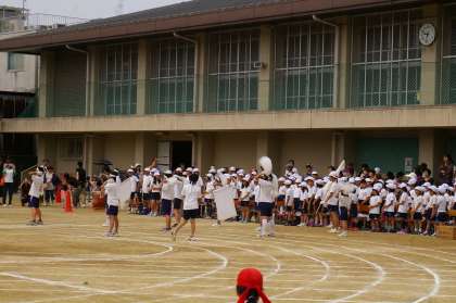 赤組,青組,白組どの色も一生懸命練習をしてきました。応援団のリードのもと,全員が心を一つに,大きな声でエールを送ります。各色の頑張る姿がありました。