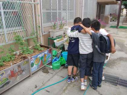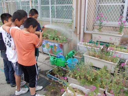 園芸委員会の6年の子ども達が,朝休みにランドセルを背負ったまま水やりをしてくれました。梅雨が近づいている空ですが,雨は降りませんでしたから。