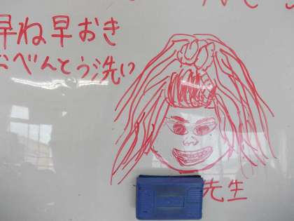 先生の似顔絵が添えられていました。