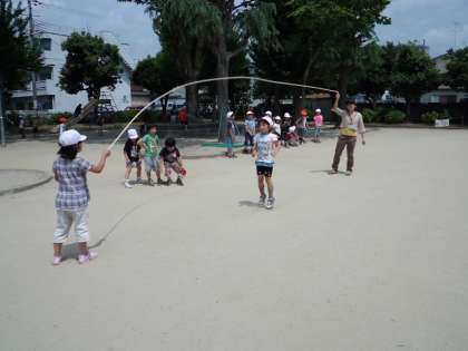 6月8日(金)に生活科の学習で校区にある辻公園の探検に行きました。公園では、遊具で仲良く遊んだり、広場で大なわとびやだるまさんがころんだをしたりして、楽しく過ごしました。公園を取り囲むように植えてあるアジサイが、元気よく遊ぶ子どもたちを見守るように咲き始めていました。