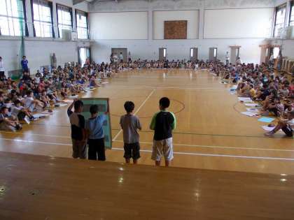 児童朝会では,委員会からのお知らせやお願いも発表しています。7月10日の児童朝会は,給食委員会の発表がありました。