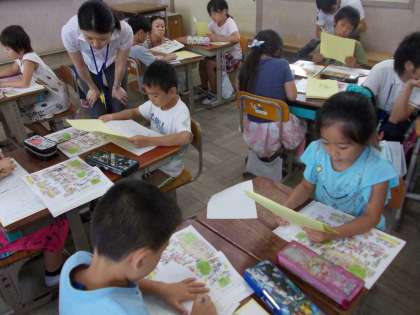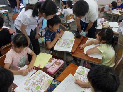 だいじなことをおとさずに話したり聞いたりしよう「ともこさんはどこかな」という楽しい単元です。ともこさんの特徴をよく聞いて見つける活動や,誰かの特徴をとらえてわかりやすくアナウンスして友達に探してもらう活動をしました。