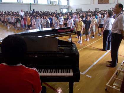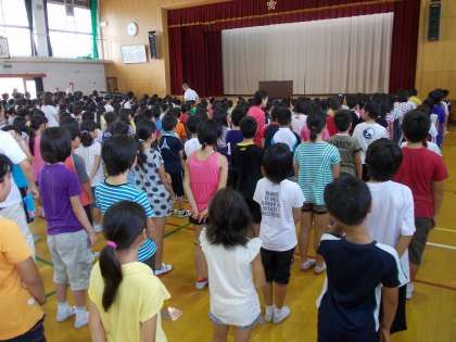 明日から夏休みです。7月の授業・給食最終日の朝に儀式朝会がありました。