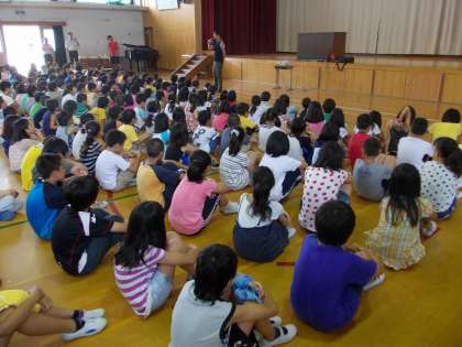 明日から夏休みです。7月の授業・給食最終日の朝に儀式朝会がありました。