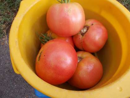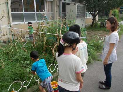 夏休みを前にして,はにほ組が学級園の野菜の観察と収穫をしました。トマトは赤く色づいておいしそうですね。夏休みの前半には,まだまだ収穫が続きそうです。