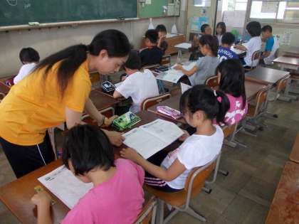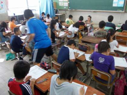 夏休みの初日,5年生は補習です。ジョイントプログラム等の宿題に取り組んでいます。
