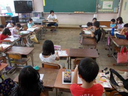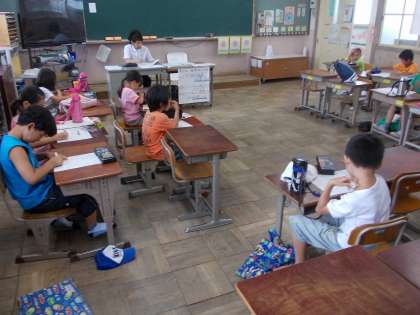 夏休みの初日,3年生は補習です。宿題やプリント・読書に取り組んでいます。