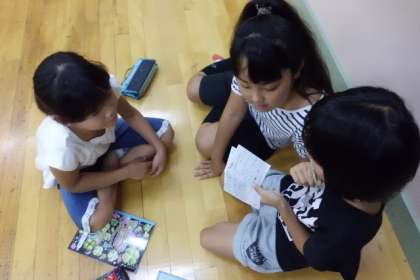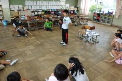 キャンプファイヤーの出し物の練習風景です。本番が楽しみですね。