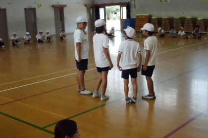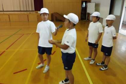 キャンプファイヤーの練習をしました。司会・ゲームの進行、かっこよくみんなを楽しませて下さいね。
