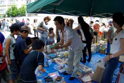 PTAのお店は激安バザーです。このお店にも,本校の児童がたくさん集まっていました。