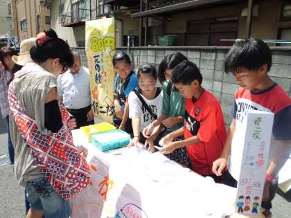 子どもたちは大きな声でお客さんを呼び元気よく売っていました。