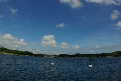 賢島港から船に乗ってみさきの家に向かいます。青い空が広がり湾内のため波も穏やかでしたが,遠く離れた台風の影響で強風が吹いていました。