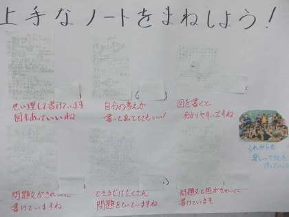 上手なノートをまねしよう 〜3年生の教室掲示より〜
