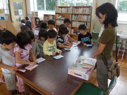 読んでもらった後は,カードにスタンプを押してもらっています。