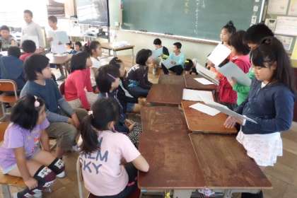 ろ組の教室で国語の発表会がありました。みんな真剣な表情でした。