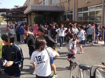 級友に見送られて賀茂川へ出発しました。暖かい小春日和です。