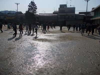 運動場が少しぬかるんでいましたが,中間マラソンを行いました。